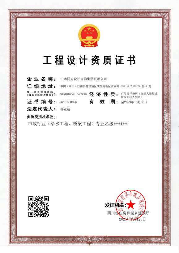 • 工程设计市政行业道路工程专业甲级